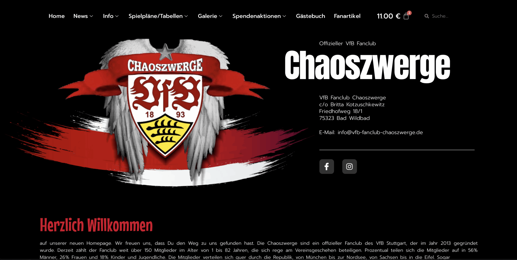 Komplette Neuerstellung der Webseite des offiziellen VfB-Fanclubs „Chaoszwerge“ – modernes Design, klare Struktur und nahtlose Integration eines Online-Shops.